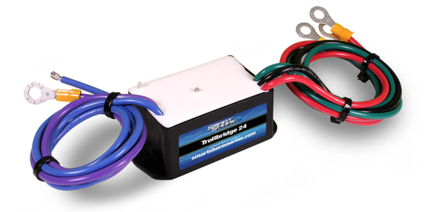 The Trollbridge 24 allows you to charge your 24-Volt trolling motor batteries from the 12-Volt alternator on your main engine, your trailer hookup, or any single or multi-output 12-Volt charger. It is designed to allow using your starting battery as one of the two (2) trolling motor batteries.
